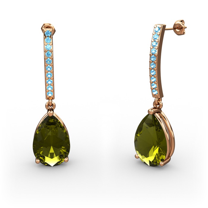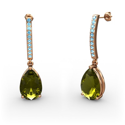 Peridot ve akuamarin 925 ayar rose altın kaplama gümüş küpe