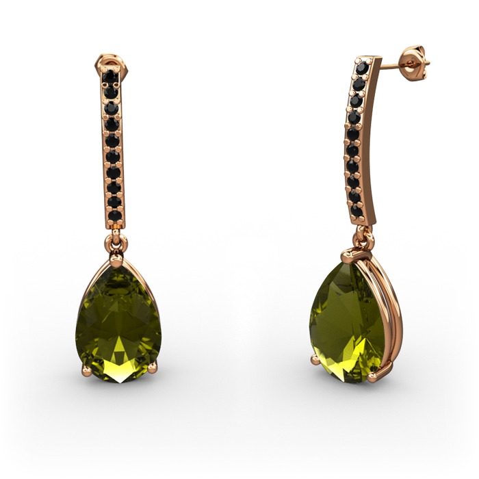 Peridot ve siyah zirkon 925 ayar rose altın kaplama gümüş küpe