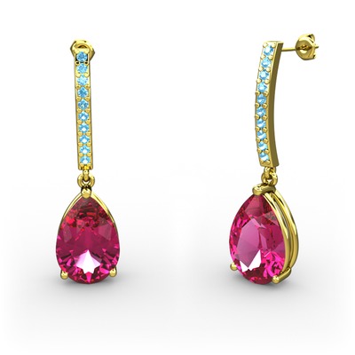Rodolit garnet ve akuamarin 18 ayar altın küpe