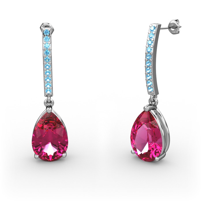 Rodolit garnet ve akuamarin 18 ayar beyaz altın küpe