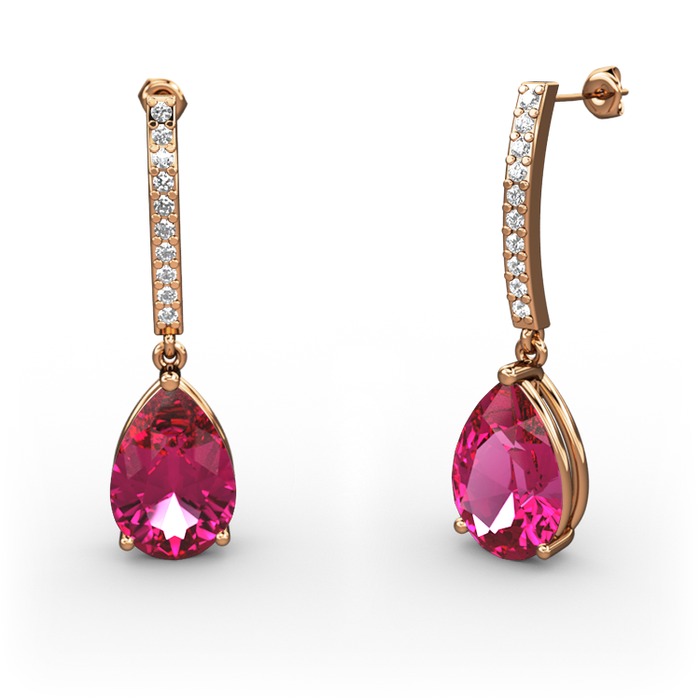 Rodolit garnet ve beyaz zirkon 14 ayar rose altın küpe