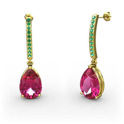 Rodolit garnet ve yeşil kuvars 8 ayar altın küpe