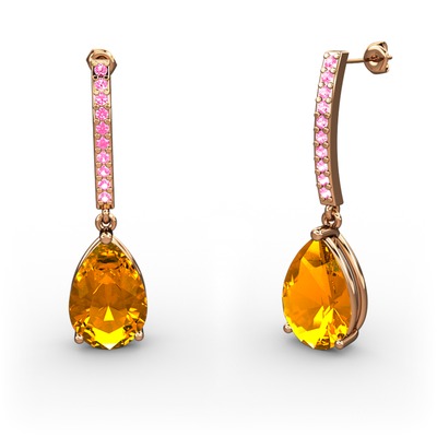 Sitrin ve pembe kuvars 18 ayar rose altın küpe