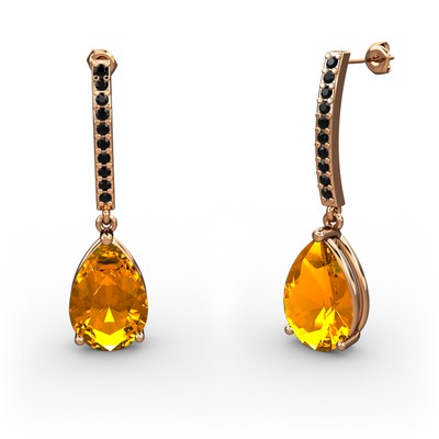 Sitrin ve siyah zirkon 14 ayar rose altın küpe