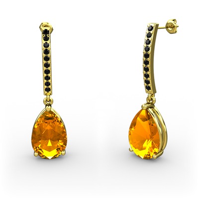 Sitrin ve siyah zirkon 8 ayar altın küpe
