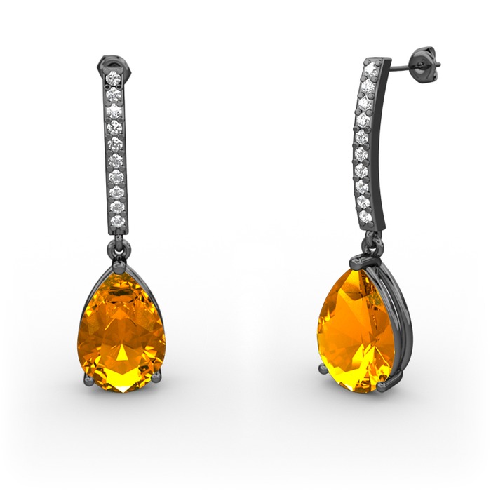 Sitrin ve swarovski 925 ayar siyah rodyum kaplama gümüş küpe
