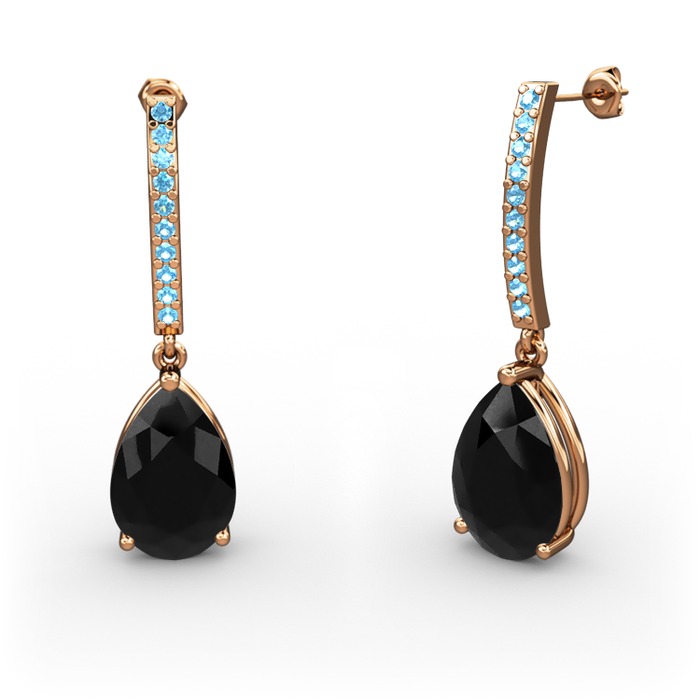 Siyah zirkon ve akuamarin 18 ayar rose altın küpe