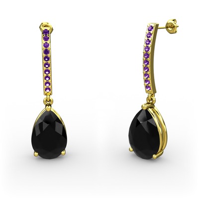 Siyah zirkon ve ametist 8 ayar altın küpe