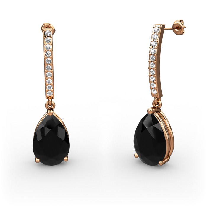 Siyah zirkon ve beyaz zirkon 925 ayar rose altın kaplama gümüş küpe