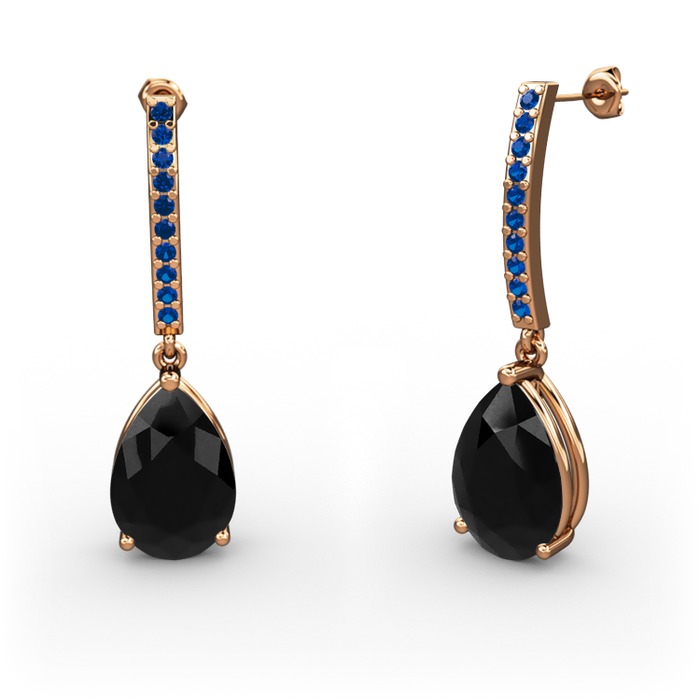 Siyah zirkon ve lab safir 14 ayar rose altın küpe