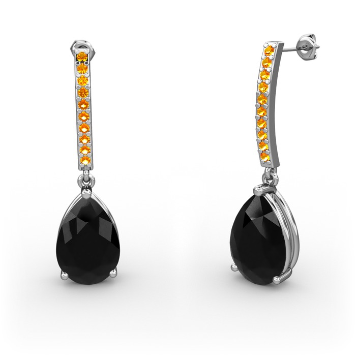 Siyah zirkon ve sitrin 18 ayar beyaz altın küpe