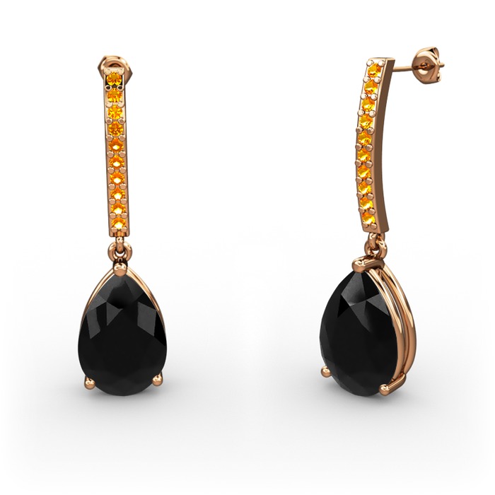 Siyah zirkon ve sitrin 8 ayar rose altın küpe