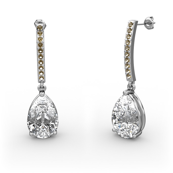 Swarovski ve dumanlı kuvars 18 ayar beyaz altın küpe