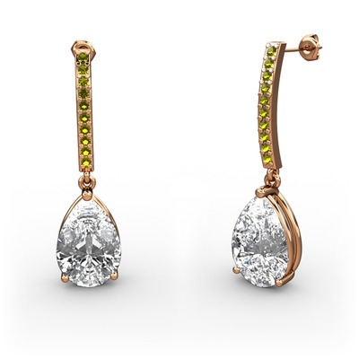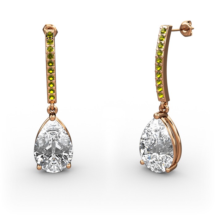 Swarovski ve peridot 925 ayar rose altın kaplama gümüş küpe