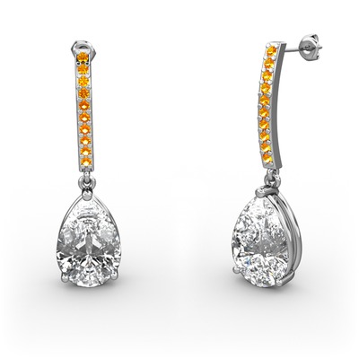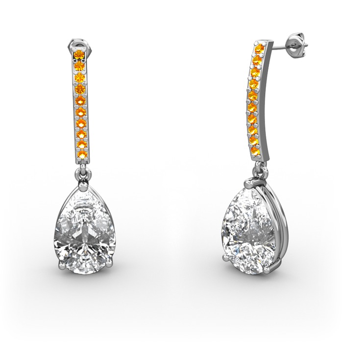 Swarovski ve sitrin 8 ayar beyaz altın küpe