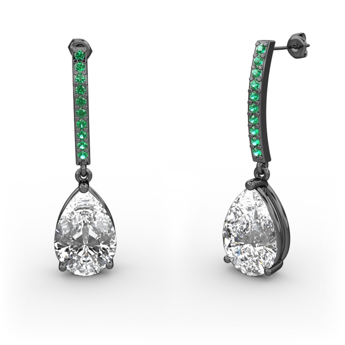 Swarovski ve yeşil kuvars 925 ayar siyah rodyum kaplama gümüş küpe