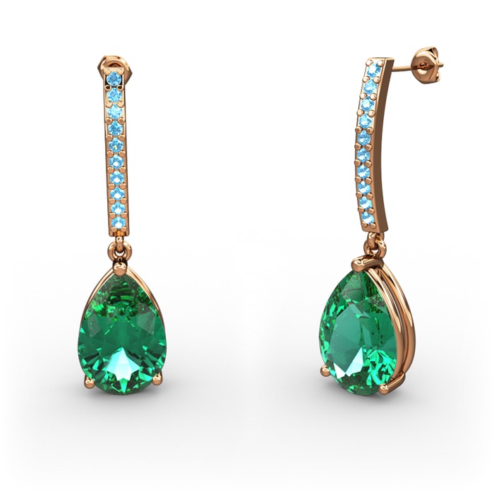 Yeşil kuvars ve akuamarin 18 ayar rose altın küpe