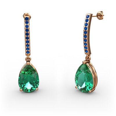 Yeşil kuvars ve lab safir 18 ayar rose altın küpe