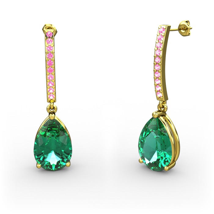 Yeşil kuvars ve pembe kuvars 8 ayar altın küpe