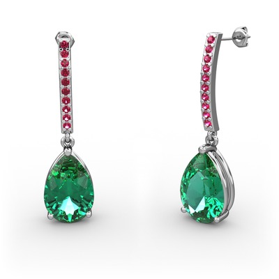 Yeşil kuvars ve rodolit garnet 8 ayar beyaz altın küpe