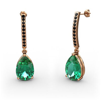 Yeşil kuvars ve siyah zirkon 18 ayar rose altın küpe