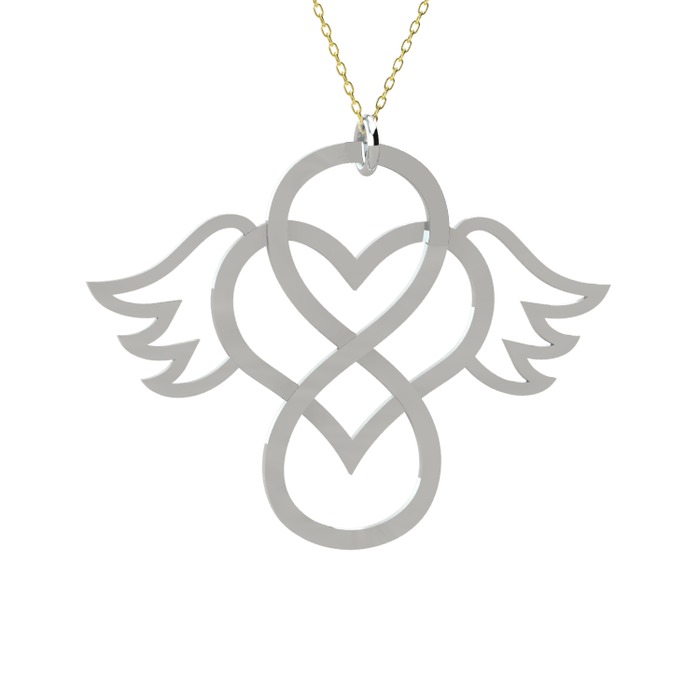Melek Kanadı, Sonsuzluk İşareti ve Kalp sembolunu birleşmesinden oluşan kolyemizle sonsuz saflık ve sevginizi yansıtın. Detaylı Bilgi