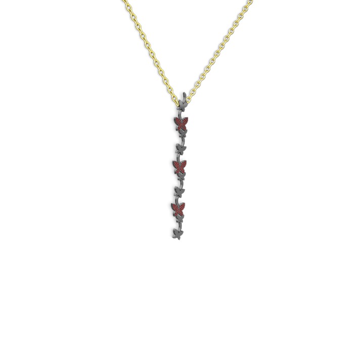 Garnet 925 ayar siyah rodyum kaplama gümüş kolye (40 cm altın rolo zincir)