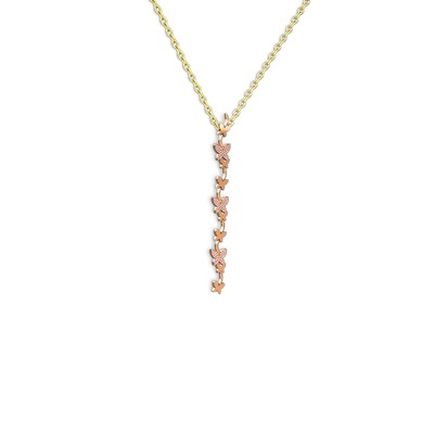 Mesa Kelebek Kolye - Pembe kuvars 8 ayar rose altın kolye (40 cm gümüş rolo zincir)