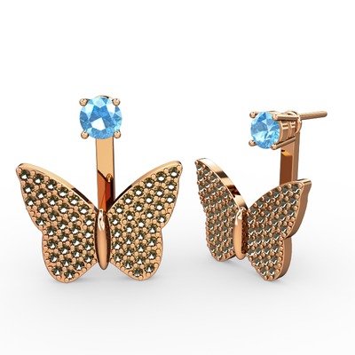 Akuamarin ve dumanlı kuvars 18 ayar rose altın küpe