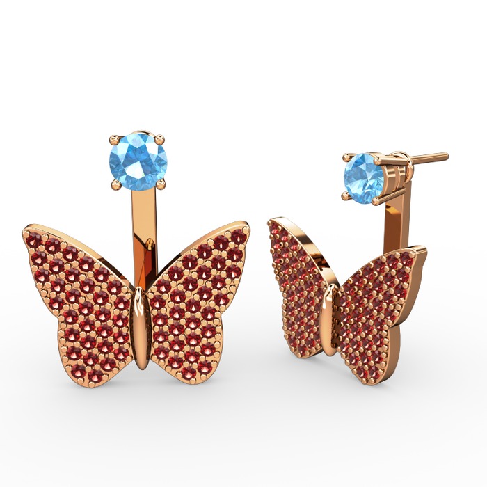 Akuamarin ve garnet 18 ayar rose altın küpe