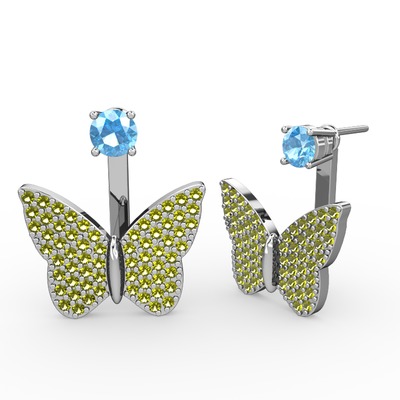 Akuamarin ve peridot 18 ayar beyaz altın küpe