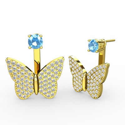 Akuamarin ve swarovski 18 ayar altın küpe