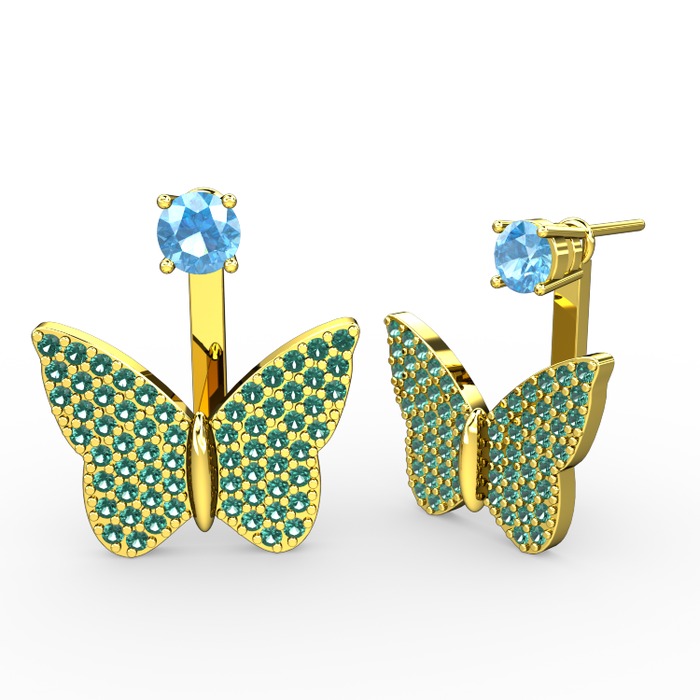 Akuamarin ve yeşil kuvars 18 ayar altın küpe