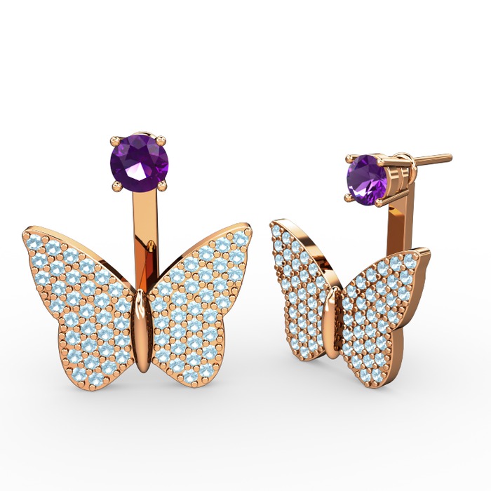 Ametist ve akuamarin 14 ayar rose altın küpe