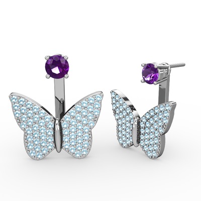 Ametist ve akuamarin 8 ayar beyaz altın küpe