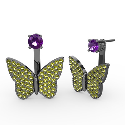 Ametist ve peridot 925 ayar siyah rodyum kaplama gümüş küpe