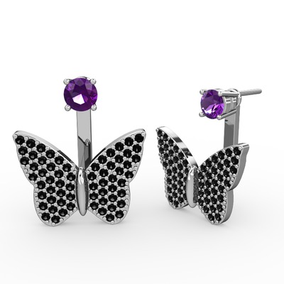 Ametist ve siyah zirkon 8 ayar beyaz altın küpe