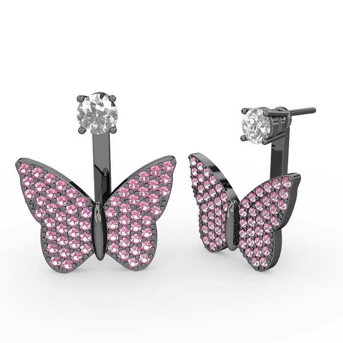 Beyaz zirkon ve pembe kuvars 925 ayar siyah rodyum kaplama gümüş küpe