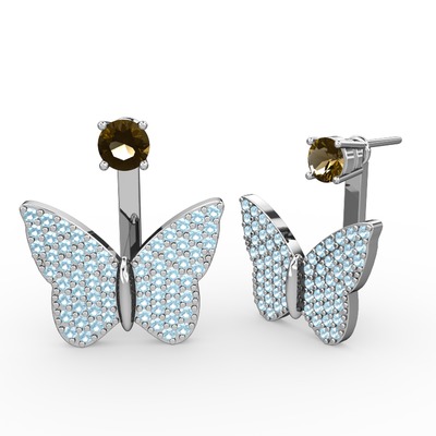 Dumanlı kuvars ve akuamarin 18 ayar beyaz altın küpe