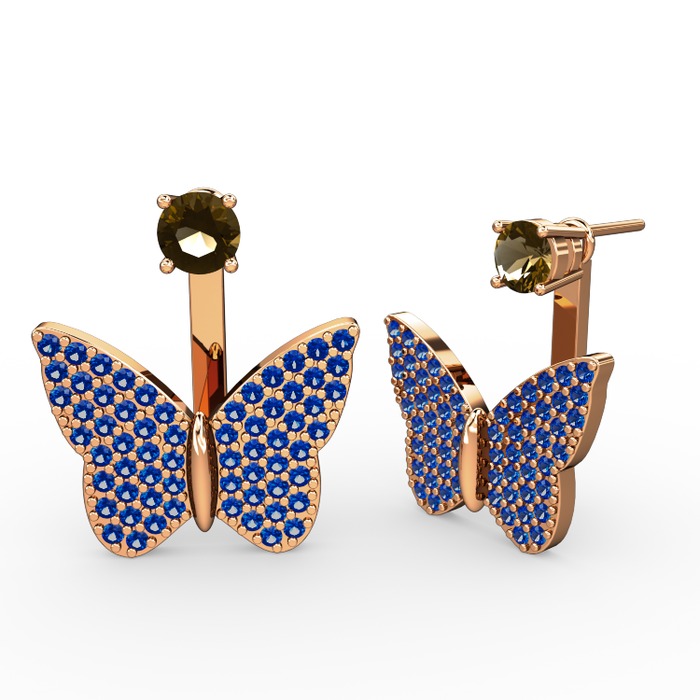 Dumanlı kuvars ve lab safir 8 ayar rose altın küpe