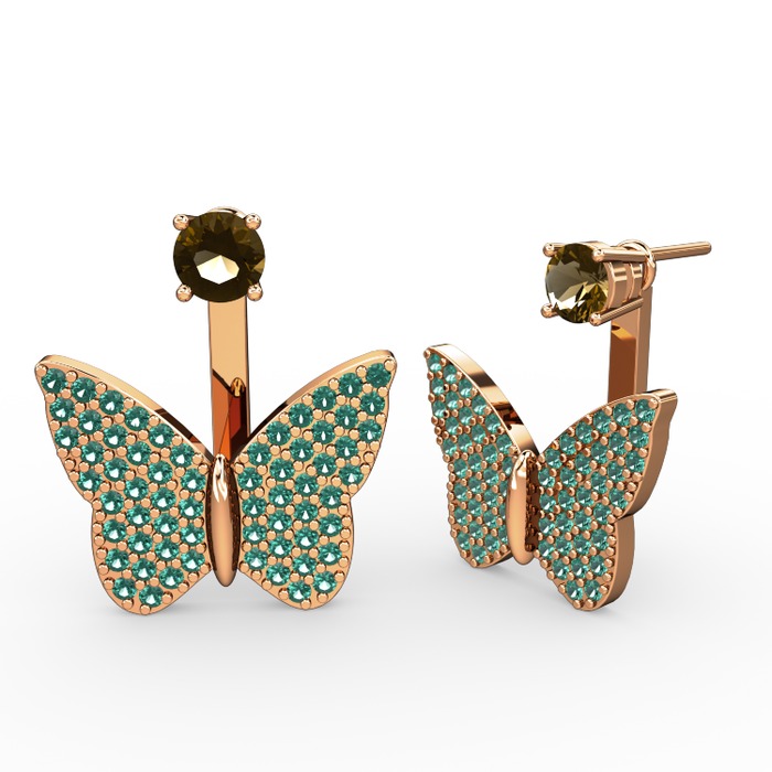 Dumanlı kuvars ve yeşil kuvars 925 ayar rose altın kaplama gümüş küpe