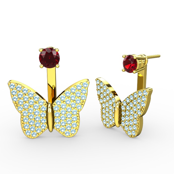 Garnet ve akuamarin 925 ayar altın kaplama gümüş küpe