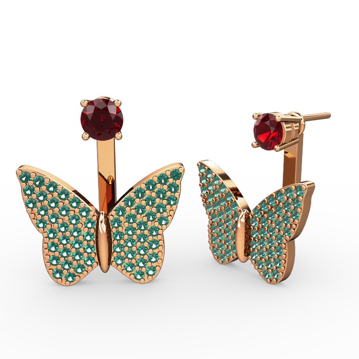 Garnet ve yeşil kuvars 925 ayar rose altın kaplama gümüş küpe