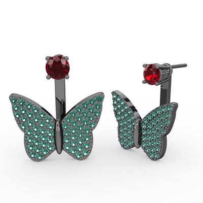 Garnet ve yeşil kuvars 925 ayar siyah rodyum kaplama gümüş küpe