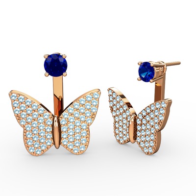 Lab safir ve akuamarin 8 ayar rose altın küpe