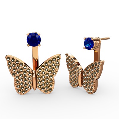 Lab safir ve dumanlı kuvars 14 ayar rose altın küpe