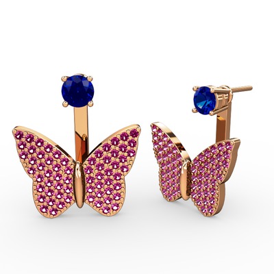Lab safir ve rodolit garnet 8 ayar rose altın küpe