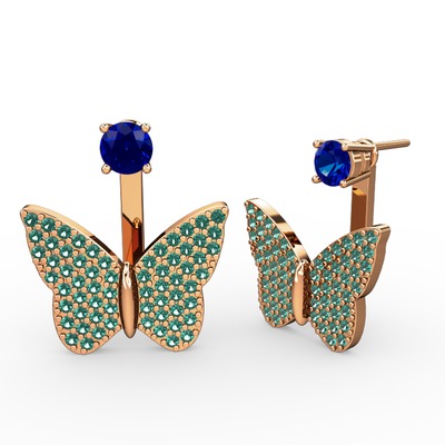 Lab safir ve yeşil kuvars 18 ayar rose altın küpe