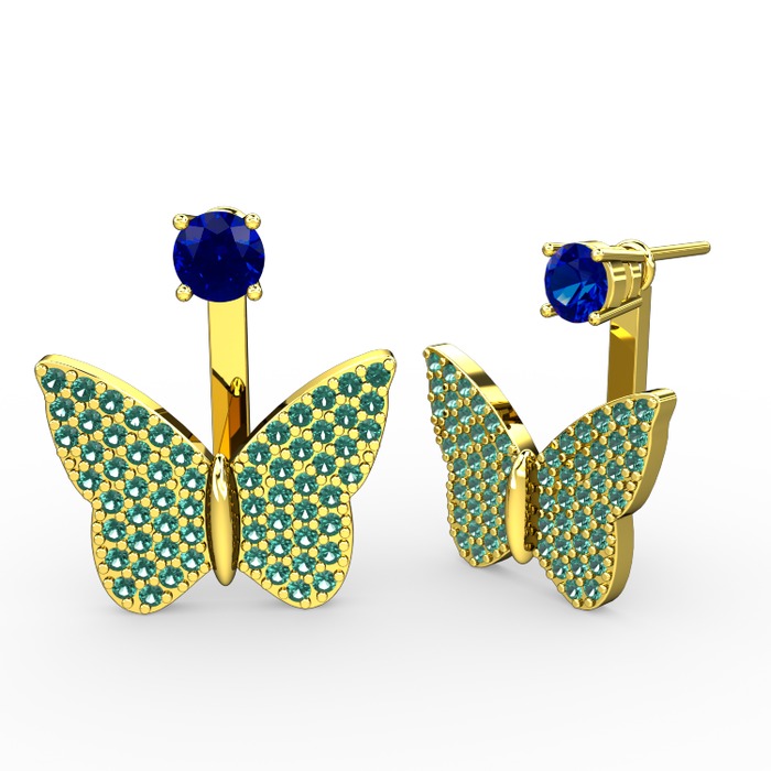 Lab safir ve yeşil kuvars 8 ayar altın küpe