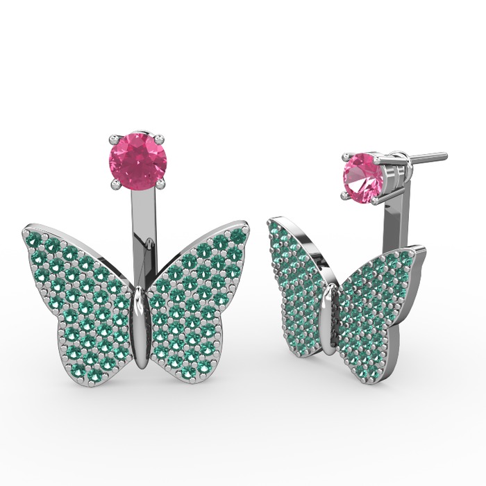 Pembe kuvars ve yeşil kuvars 8 ayar beyaz altın küpe